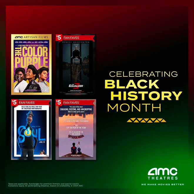 It’s that time of the year again where AMC Theatres is offering moviegoers a chance to see fan favorites for only $5 this Black History Month. AMC has announced their Black History Month $5 Fan Faves promotion set to run through the entire month of February, offering four different movies that celebrate Black culture and feature Black filmmakers, writers and actors.