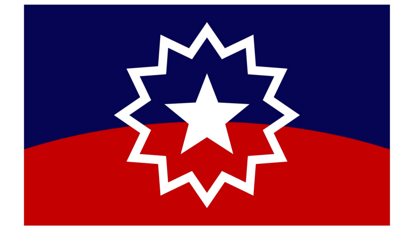 Juneteenth Flag (The above Blue color represents the horizon blue and the red color below is symbolic of the ground soaked with blood…The five-pointed star refers both to Texas and to the “freedom of African Americans in all 50 states”; surrounding it is a new star, which represents a new beginning for all.)