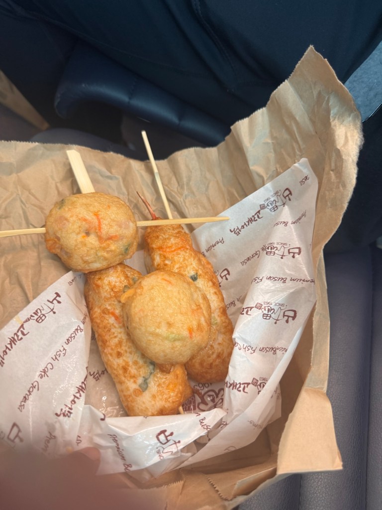 Now before we arrived in Beijing we had a brief layover in Seoul, Korea. Now while we didn’t have enough time to venture into the city we did get a chance to try some good food and snacks. So to tickle my fancy, I tried the fish cakes and crab and fish cake, and then a few sweet treats…definitely quite tasty if I say so myself!